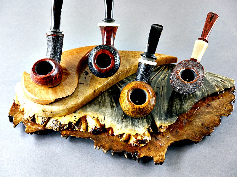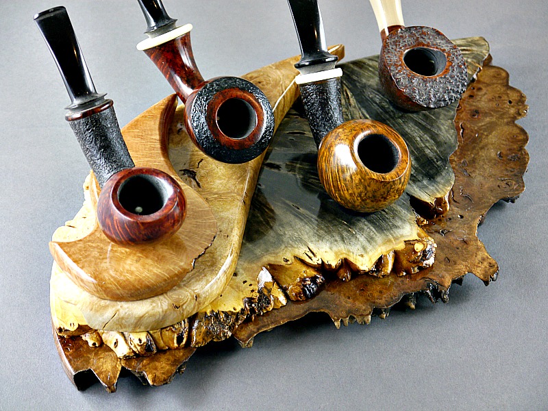 Briar 4 Pipe Stand (SOLD)Briar Burl, Male Burl, Buckeye Burl and Walnut Burl