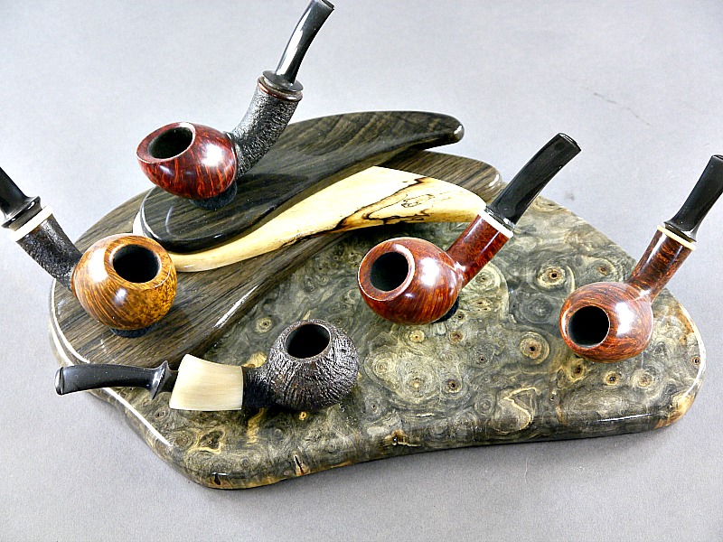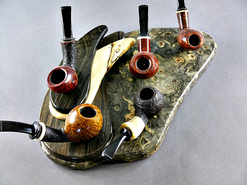If you would like more information on this humidors, please use visit our contact page and reference humidors: Buckeye Burl/Morta 5 Pipe Stand