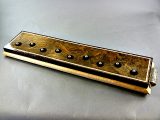 Circassian Walnut with Quilted Maple, Walnut and Wenge trim on a Quilted Maple base with antique Brass handles and Brass feet
