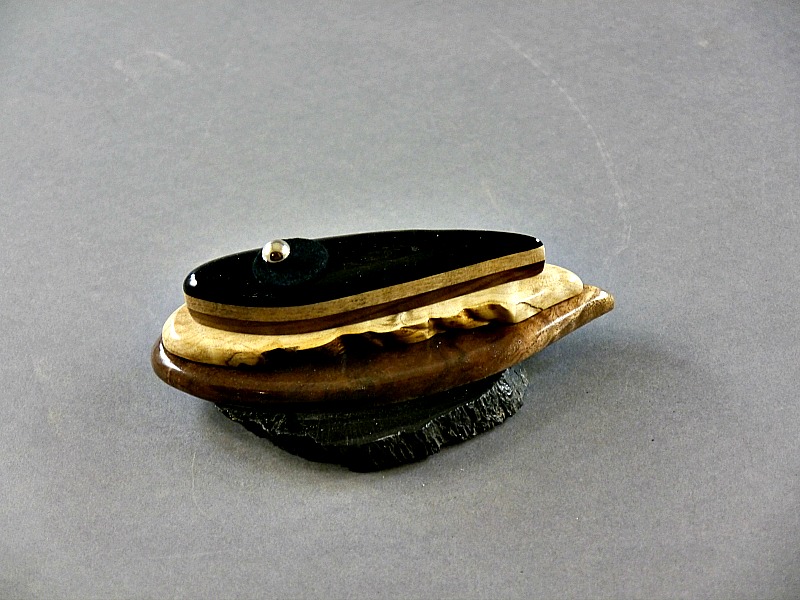 Ebony, Quilted Maple and Walnut laminate on Figured Maple, Walnut and Morta