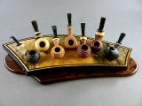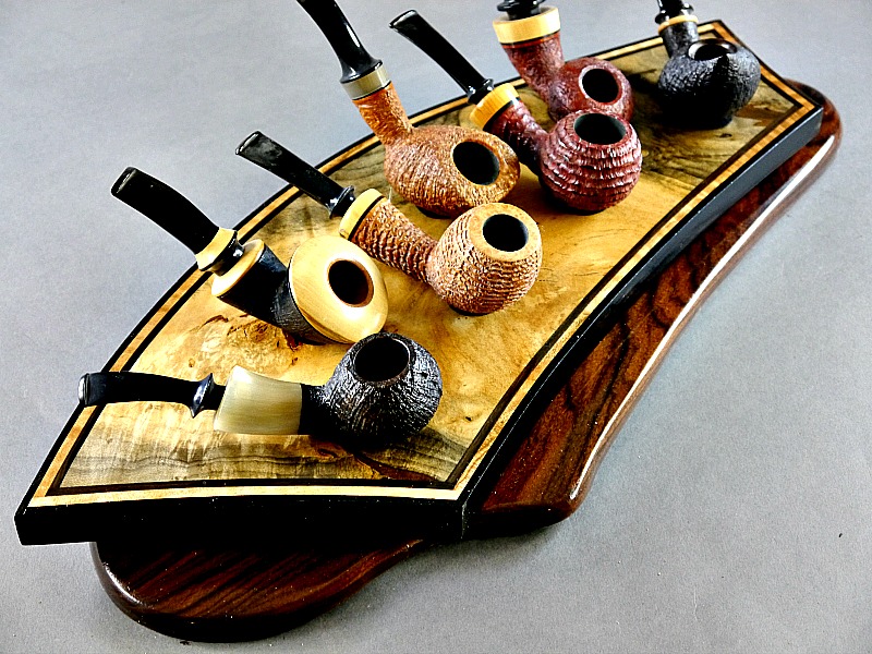 Very unique coloration in this piece of Maple Burl. Same colors as Buckeye Burl. Maccasur Ebony, Maple Burl and Gabon Ebony trim with Morado base