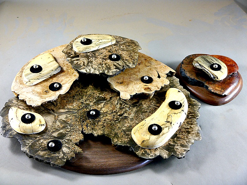 Just finished this commission. Fantastic Birds Eye Maple Burl. Used a little Spalted Tamarind for accent. Base is Black Walnut. Threw in the single to make it interesting.