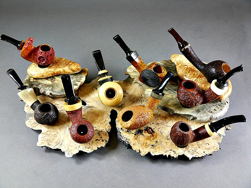 First Naturals large stand for 2015. Lightly dyed Maple Burl, Buckeye Burl and Maple Burl.