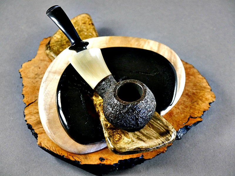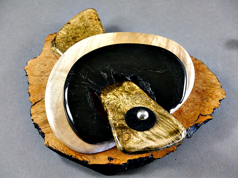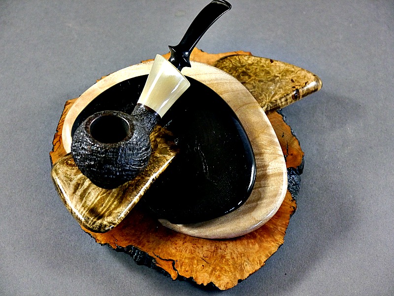 Briar Burl base, Dyed Maple Burl, Figured Maple and Morta.