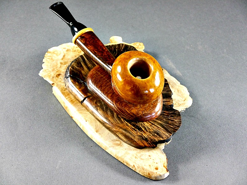 Maple Burl, Dyed Briar Burl, Lacewood. Showing off my new Bill Walther pipe I got I got from him at Premal’s shop during Ohio show. They do look good together.