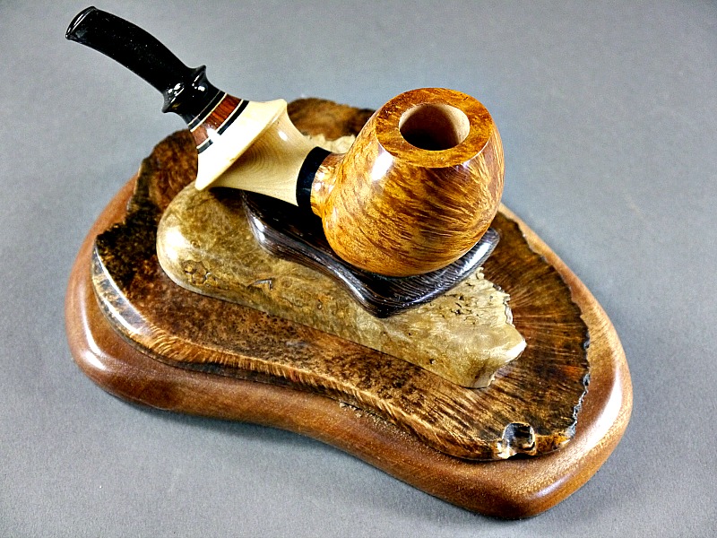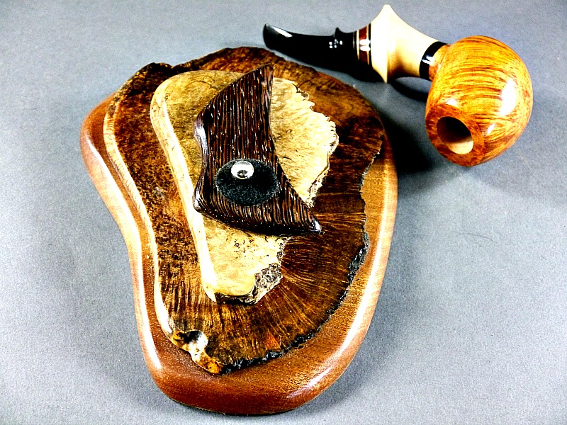Mahogany base, Dyed Briar Burl, Mystery Burl, and Wenge