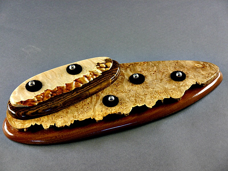 Quilted Free Edge Maple on Bacote with Maple Burl and Mahogany base