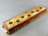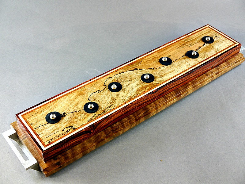 Spalted Maple with Rosewood and Quilted Maple trim on a figured Walnut base and cast Pewter Legs