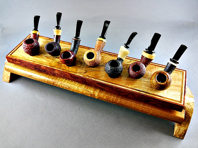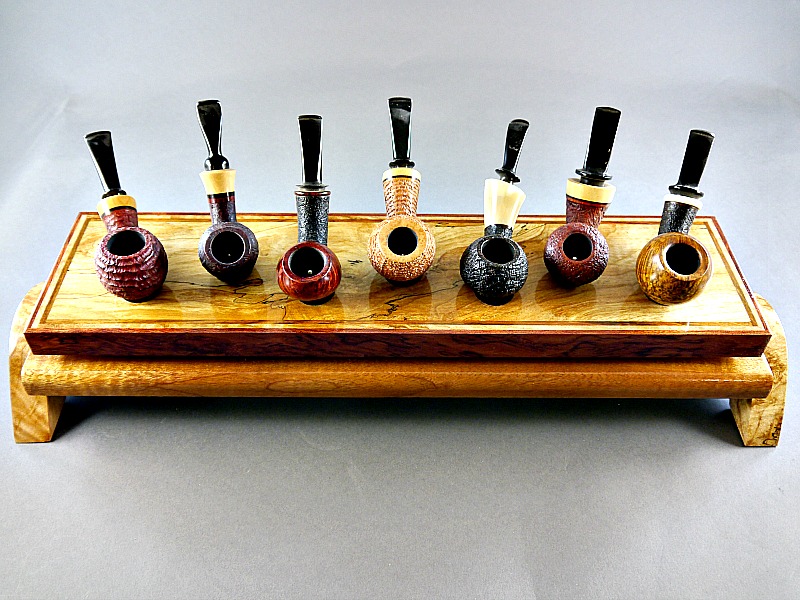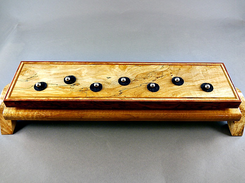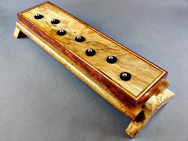 Spalted Maple with Rosewood, Quilted Maple and Quilted Bubinger trim. On Mahogany base with Spalted Maple Burl legs