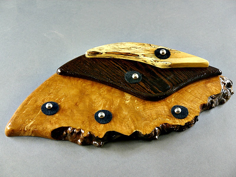 Spalted Tamarind and Wenge on a Madrone Burl base