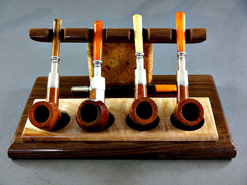 If you would like more information on this humidors, please use visit our contact page and reference humidors: TH Walnut and Maple Burl 4 Pipe Stand