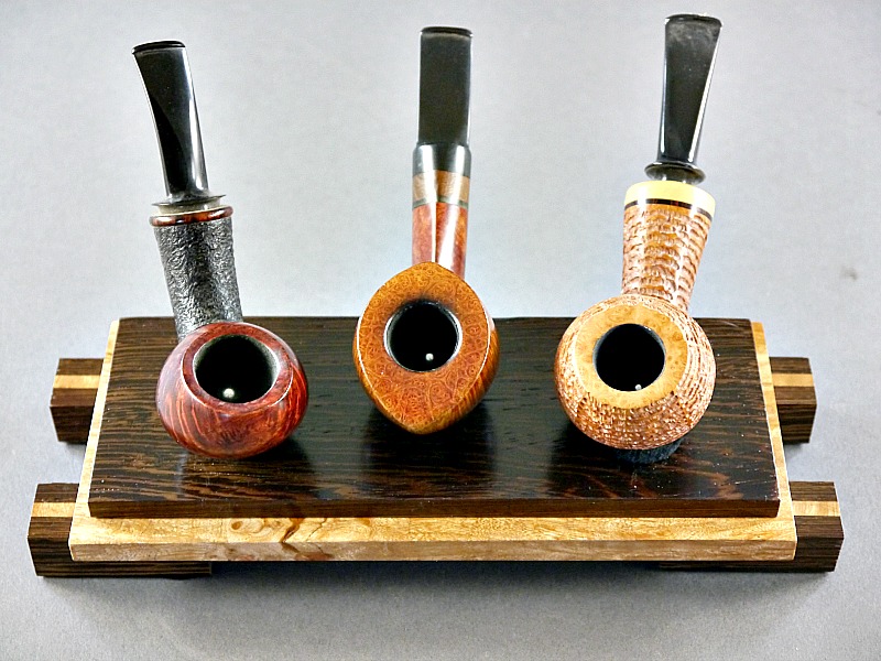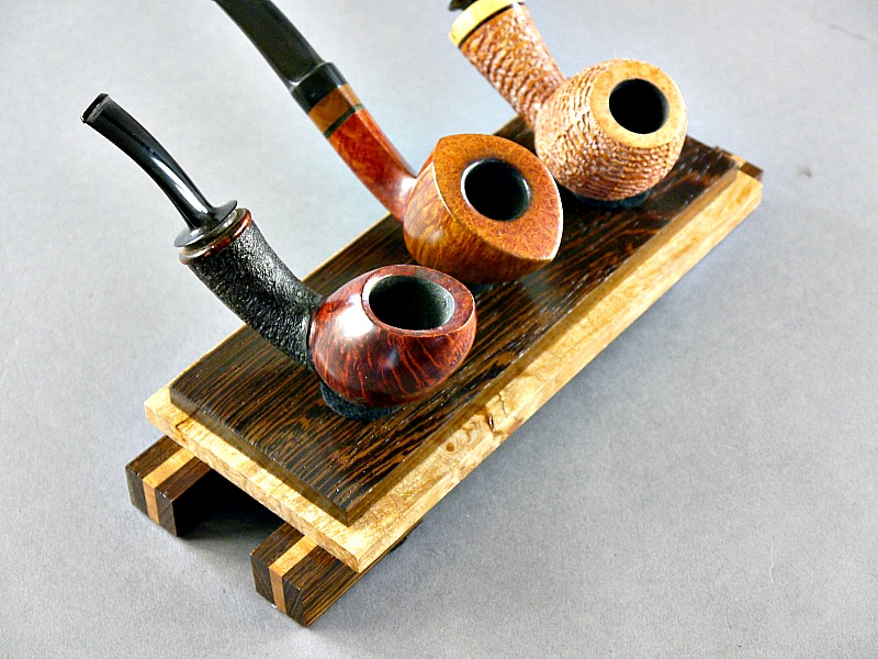 Wenge/Maple Burl 3 Pipe Stand (SOLD)Wenge with a Maple Burl Base and laminate legs